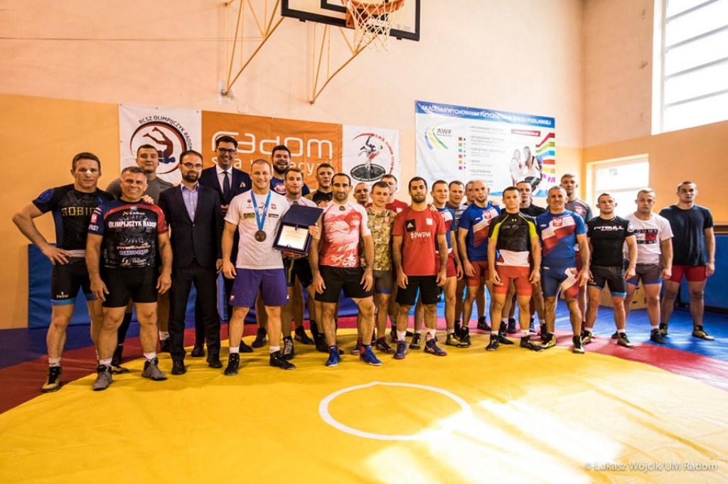 W dniu 12.07.2019r przebywającą na zgrupowaniu w Radomiu Kadrę Polski Seniorów w zapasach stylu klasycznym uroczyście powitali: Wiceprezydent Miasta Radomia Pan Konrad Frysztak oraz Dyrekor Kancelari Prezydenta Pan Mateusz Tyczyński. Oprócz powitania Panowie wręczyli Kadrowiczom również drobne upominki. Nie obyło się też bez gratulacji dla Naszego Brązowego Medalisty Igrzysk Europejskich z Mińska - Arkadiusza Kułynycza, który otrzymał z rąk w/w statuetkę.